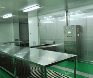 整臺設(shè)備設(shè)計制作均符合中華人民共和國«食品單體速)東裝置»及商檢出口要求。 庫內(nèi)外結(jié)構(gòu)均采用不銹鋼SUS304,全部為氬弧焊接。蒸發(fā)器采用大片距鋁合金組片管組,其他均為不銹鋼SUS304,充分蒸發(fā)面積,換熱效率高,充分考慮進(jìn)出貨溫度的影響,設(shè)計令結(jié)霜滯后。風(fēng)機(jī)為不銹鋼SUS304風(fēng)筒、支架、鋁合金扇葉高效率低噪音,軸流風(fēng)機(jī)采用外部集中水箱控制均勻小沖落,防止細(xì)菌繁殖,清潔衛(wèi)生,在庫內(nèi)沒有衛(wèi)生死角,不會藏污納垢,符合食品衛(wèi)生的要求 。